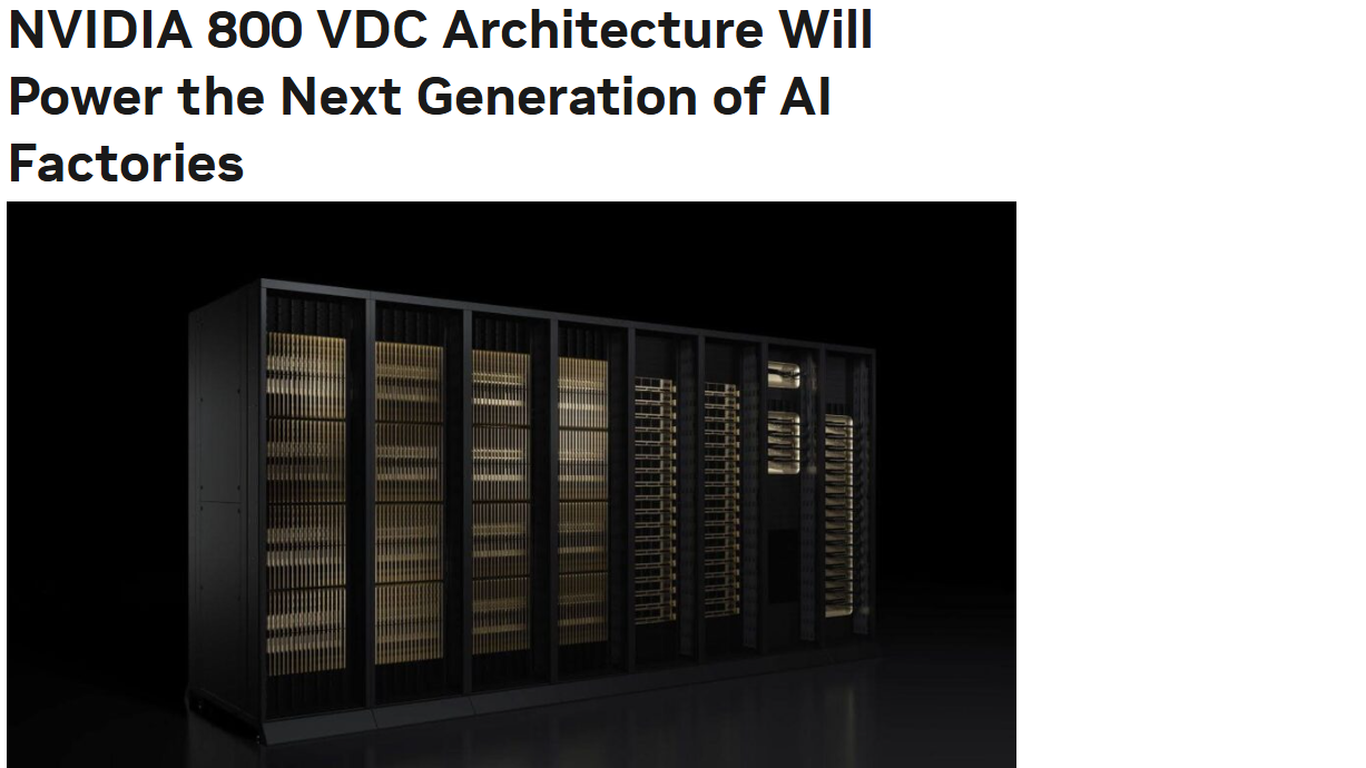 現在は1RackあたりNVIDEA GB200NVL(Blackwell)GPUを72個搭載。120kW。Rack内でAC→DC54Vに変換しバスバーで給電。